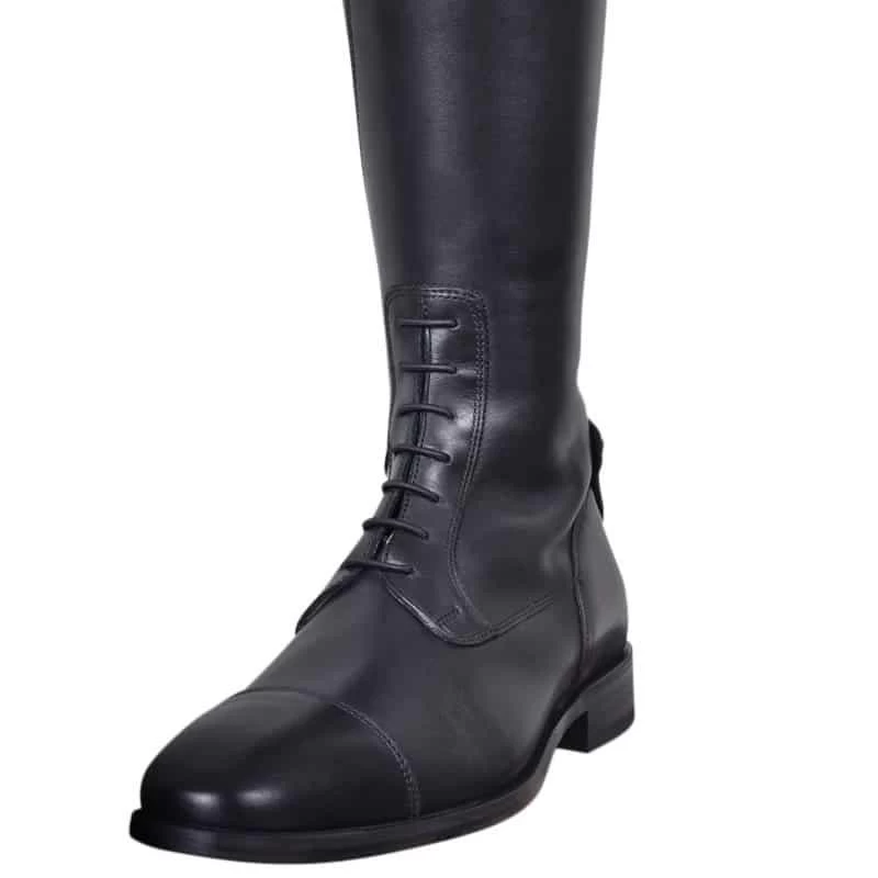 Modern, versatile, and traditional this boot is suitable for both showing and daily riding. DeNiro classic tall boots for hunters and jumpers are crafted in DeNiro’s own factory in Casarano, Italy by skilled bootmakers who attend to every detail. The Amabile is no exception; this quality, handcrafted tall boot features extraordinarily soft leather that is extremely comfortable. Highly practical elements have been added to the Amabile, such as an internal panel in smooth calfskin leather for more durability, a bottom zip guard with double-level rear spur stud, and an upgraded YKK® back zipper.
