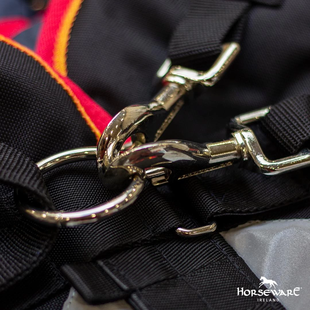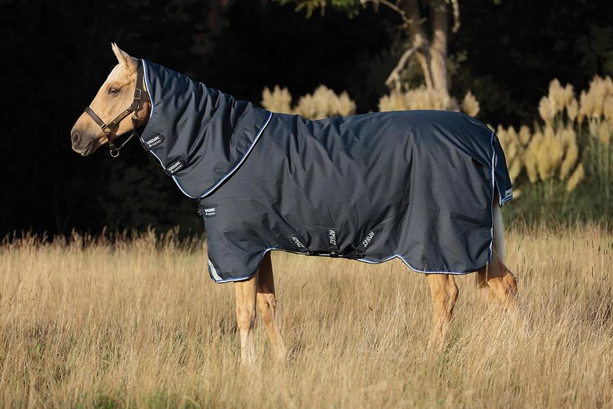 The Amigo® Bravo 12 Plus Horse Turnout is a waterproof and breathable blanket. Made from a strong waterproof and breathable 1200D polyester outer, polyester lining, and fiberfill inside for warmth. Now with our patented V-Front closure and cut to our surefit neck design, gorgeous colors, and in a lightweight option for warmer weather. Incorporating our front and rear leg arches with 3 cross surcingles, shine enhancing polyester lining, and a detachable hood as standard.