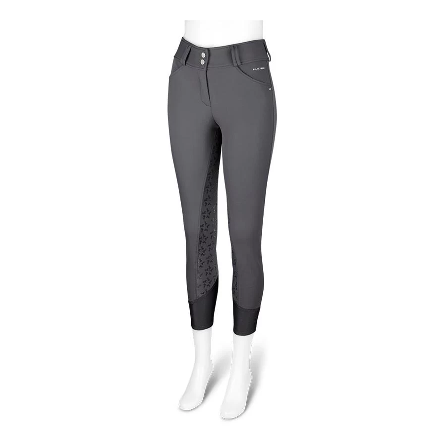 The Aria breech features a silicone full seat in a mid-rise, front zip design. The premium quick dry and stretch fabric provides amazing hand-feel, sculpt, and coverage. The fabric covered interior waistband and mesh lower leg panels provide a clean and comfortable fit. Updated logo details complete the design.