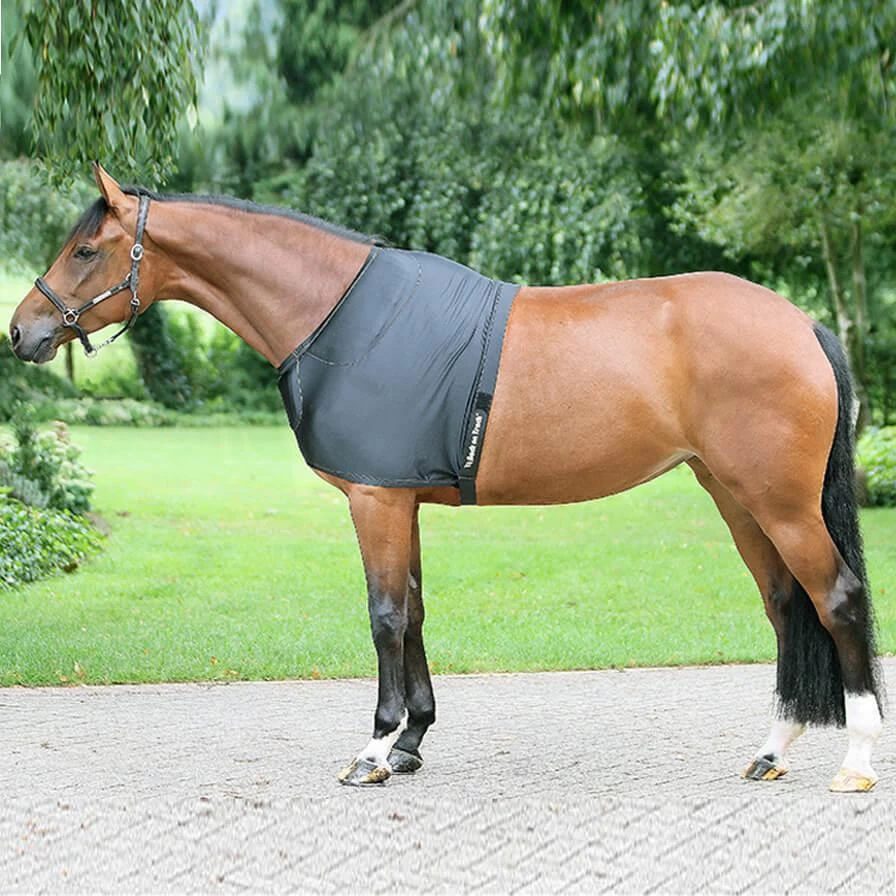 Shoulder guard has removable pads across the chest, and on both side of the withers. It slips overhead and has a Velcro belly strap. The Shoulder Guard, is designed to optimize freedom of movement, as well as minimising the rubbing/chafing effect of Blankets. Made with the revolutionary Welltex™ ceramic infused fabric to provide soothing, pain relieving far infrared therapy to help alleviate problems with stiffness and injuries to muscles & soft tissues. The Shoulder Guard is easy to apply, comfortable, and has three dimensions, removable padding to assist in reducing pressure around the withers/shoulder area.