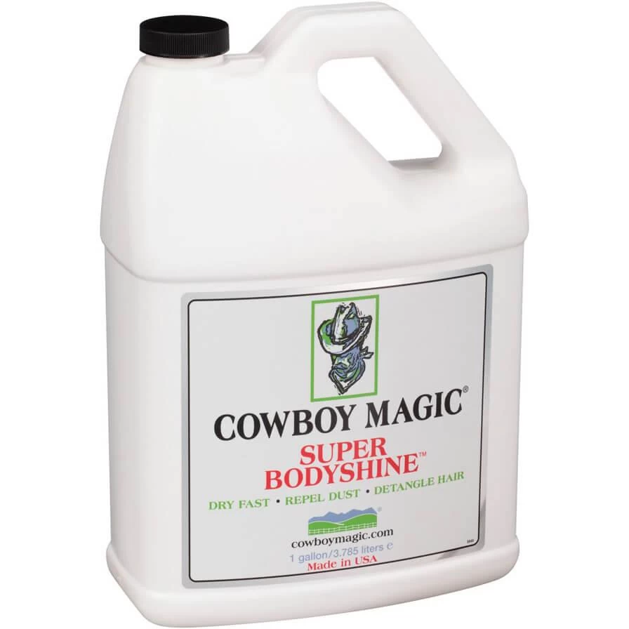 - It helps repel dust: SUPER BODYSHINE® makes it more difficult for show ring and stable stall dust to collect on hair saving grooming time and work.