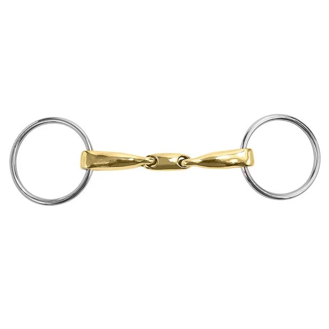 The flatter shaped bean lozenge at the center of this Loose Ring Snaffle is kinder in the horses’ mouth being slightly longer and flatter to lay smoother against the tongue.