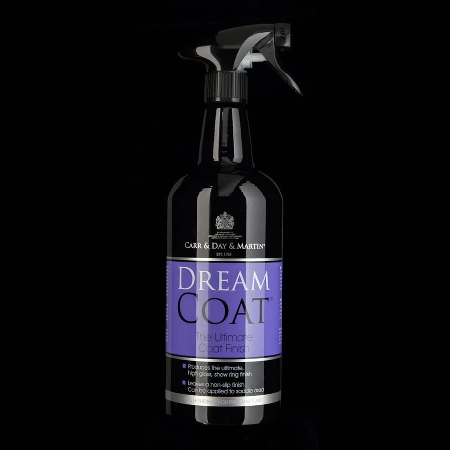 Outshine the competition with Dreamcoat, the ultimate high gloss finish. Perfect for show day, and can be used under saddle! The unique non-slip formula highlights muscle definition and can be used on the saddle patch, leaving no grease or residue. Spray Dreamcoat onto manes and tails prior to plaiting for a high-shine finish.