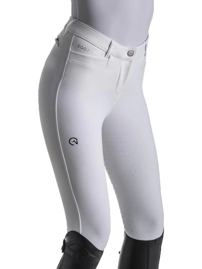 EGO7 Dressage FG breeches is the riding trousers with front pockets and zip detail on the back. Superior performance and style are guaranteed due to the signature cut developed by Italian designers along with the use of the best technical fabrics for sports. The revolutionary fabric is 100% jersey material made in Italy and ensures a perfect fit with four-way stretch for unrestricted movement. This fabric provides shape retention with breathability.Â