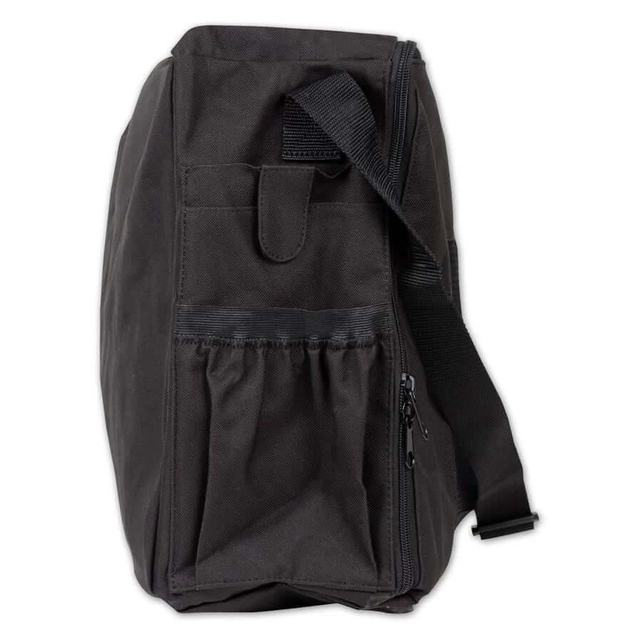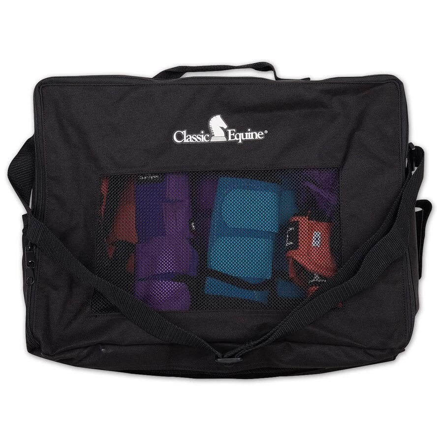 This Boot/Accessory Tote is just the right size for carrying all of you and your horse’s most essential items. Constructed with convenience in mind, it has mesh on all sides and on the bottom of the bag to not only allow dirt and odors to escape, but to also let your splint boots and bell boots air-out and breathe during storage. In addition, there are six pockets of various sizes on both sides of the tote for your cell phone, water bottle, keys and a snack. Tough nylon handle and adjustable shoulder strap provide convenient handling and carrying. Specifically designed to carry your splint boots and bell boots when then they aren’t on your horse.