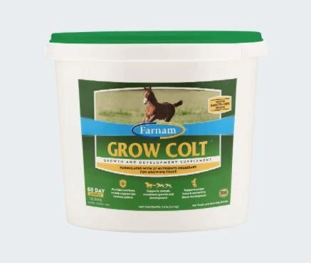 Give your foals the nutrition they need to grow healthy and strong with Farnam® Grow Colt® Growth and Development Supplement. Formulated with 27 essential vitamins and minerals to support optimal development in the first years of a foal’s life. Specially formulated for foals and young, growing horses – and is great for use with a creep feed!