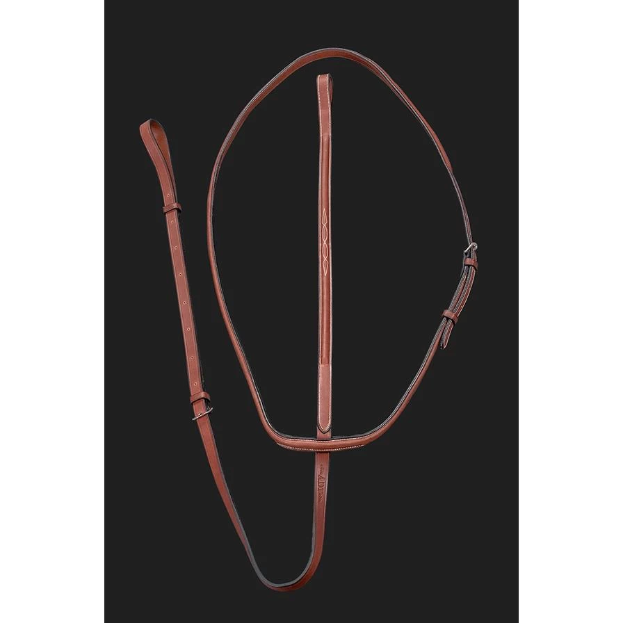 Square raised both around the neck as well as on the standing portion from the center of the chest. Accented with white fancy stitching patterns that match the Imperial and Tribute style bridles.