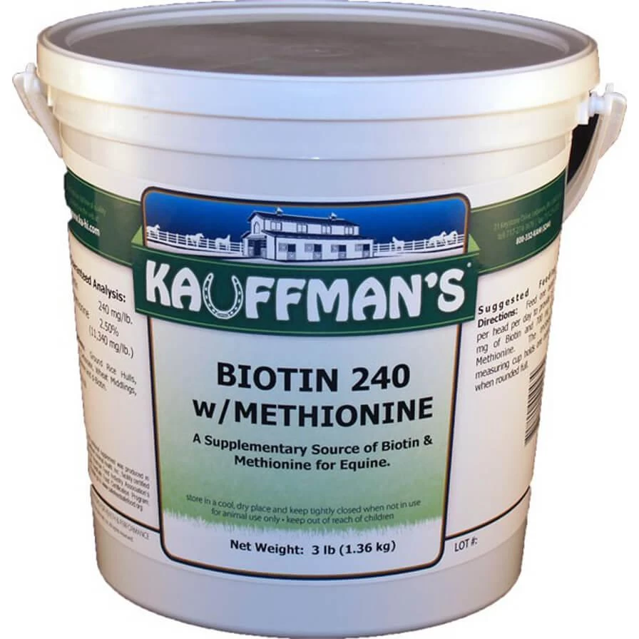 A concentrated supplemental source of Biotin (Vitamin H) with the added sulfur containing amino acid Methionine. This supplement is blended into a dry, stable base for equine using high quality spray dried Biotin to ensure uniform distribution throughout the entire product and the dl form of Methionine.