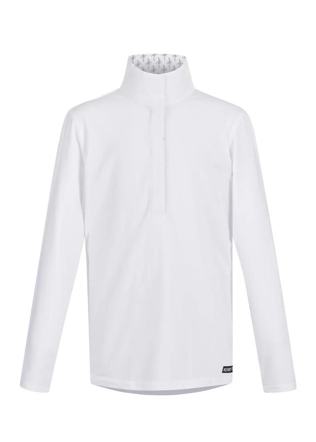 That nip in the air will not chill competitors to the core in this winter weight show shirt for kids. The super soft and stretchy knit fabric has a cozy brushed interior for core warmth without sacrificing the performance and fit of a traditional show shirt. A cute bit print collar rounds out the equestrian ambiance of this comfortable cool-weather addition to riders’ wardrobes.