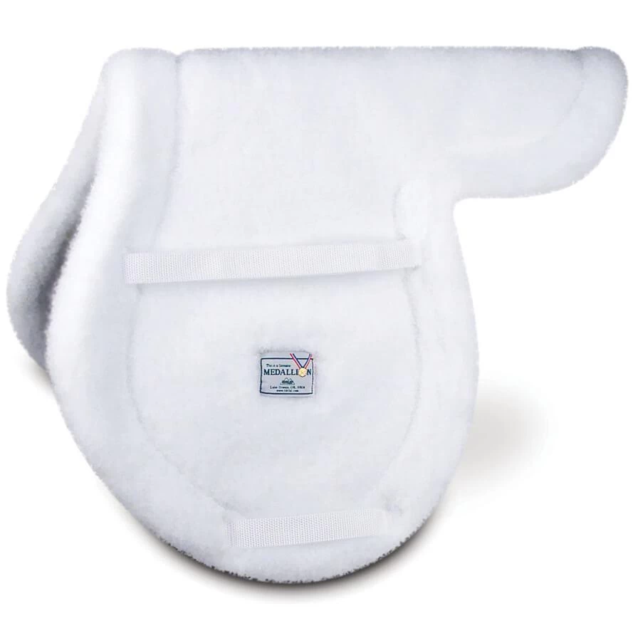 Designed to fit most Close Contact saddles. Medallion Premium Fleece Shaped Pads are made with Medallion fleece, 100% polyester pile fabric specifically designed for saddle pads, making them one of their most popular show pads. This material is extremely durable and provides excellent protection, while allowing for close leg contact. It will retain its quality look and function throughout heavy use and many washings. White only. Made in the USA.