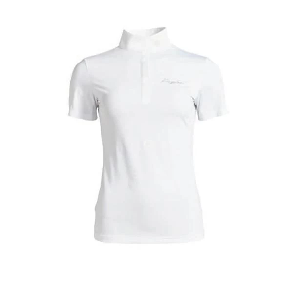 Chic and short-sleeved, the perfect show day attire! The Princess offers up the epitome of equestrian style, with a tasteful minimalist design that enhances your show ring aesthetic. With a woven collar and placket with inner snap button tape, made with shimmering fabric on the main body that offers ultimate breathability with quick-drying and moisture-wicking functionality. Finished with Kingsland printed silver glitter logo detail. Made out of 91% Nylon and 9% Elastane.