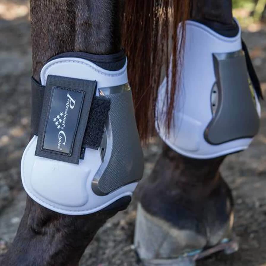 Pro Performance Show Jump Boots are designed with an innovative, shock-absorbing airbag cushion for maximum tendon impact protection. These anatomically shaped boots are lightweight, comfortable, and sit perfectly positioned on the horse’s leg. The boots do not absorb water, are durable, easy to clean, and quick to dry. These boots feature a ventilated dual hardness outer shell which is designed to dissipate energy when the strike area is hit. The shock-absorbing air cushion fits in an anatomically shaped strike area, reducing the force of impact and then returning to its original shape. Perfect for both schooling and the show ring. CLICK HERE for the matching front boots.Â