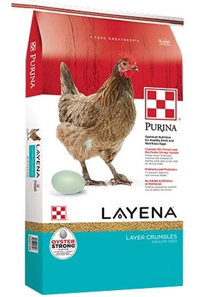 Purina® Layena® chicken feed is a high-protein and calcium feed with prebiotics, probiotics and yeast for laying hens once they reach 18 weeks of age.
