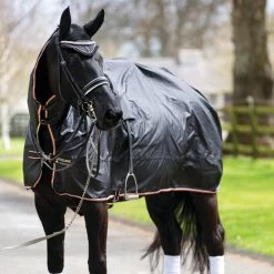- It has an integrated neck cover, stirrup slits and belly strap, ideal for use on rainy show days.