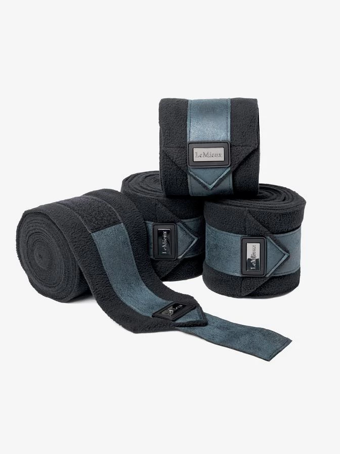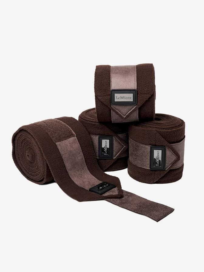 Go for the vintage look with the Rhone Collection from LeMieux. These beautiful fleece polo bandages have an antique suede effect end-detail that gives a subtle mottled look, and are finished with a gunmetal LeMieux embossed motif. Made from the highest quality fleece to avoid piling. These exercise bandages can be used on their own or with LeMieux under bandage pads for extra protection.