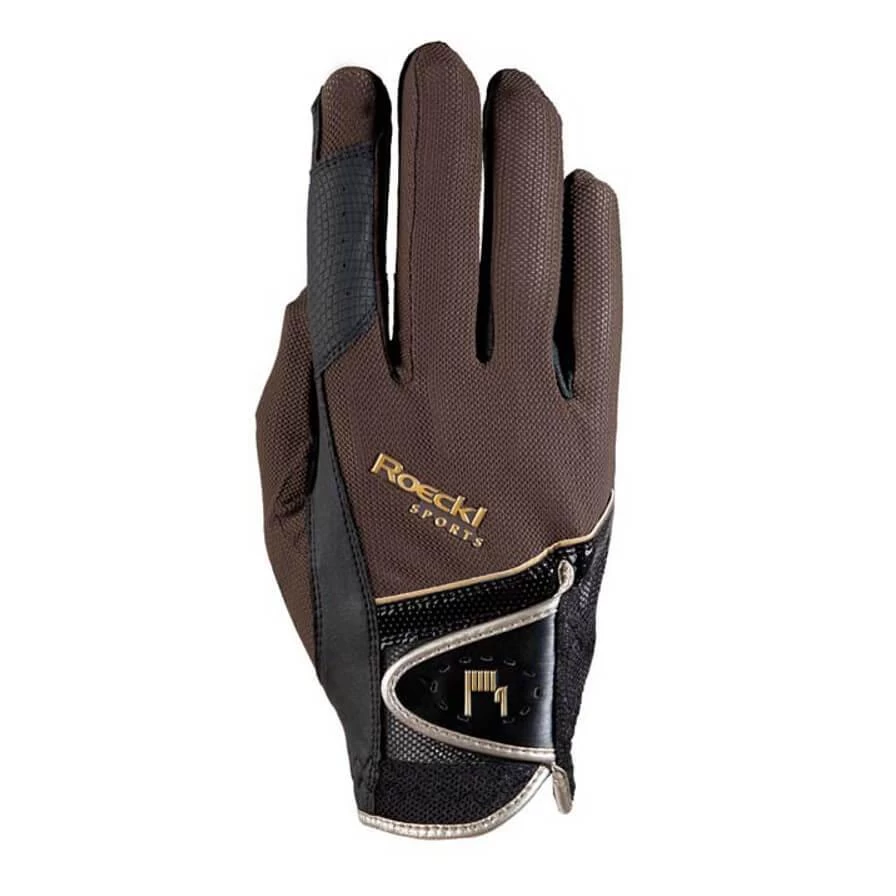 The Madrid Glove developed by Roeckl Sports combines functionality with a sporty and modern design. The Roeckl Sports logo and the discreet piping, both coloured in gold or silver (dependant on colour), together with high-quality materials and a sophisticated fastener make for an outstanding performance. The combination of soft, lightweight Micro Mesh on the backhand and the elastic, non-slip palm made from Drytec G5 with Slip Stop trimming makes this glove extremely comfortable to wear and ensures tactility as well as a perfect grip on the reins. Special trimming for the curb provides added strength where needed.